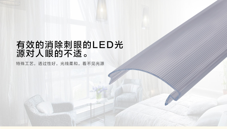 2、透明PC+棱筋:這種材料制成的燈罩,機械強度很高,透光率也很好,但是會造成光損,光擴散的效果也很一般,罩在燈上后,光線會不夠柔美。